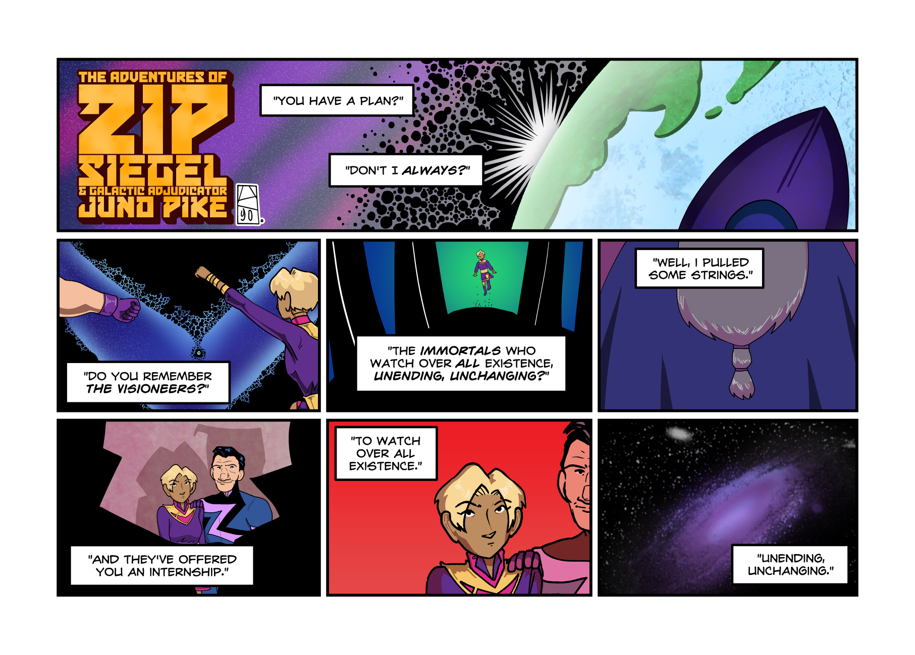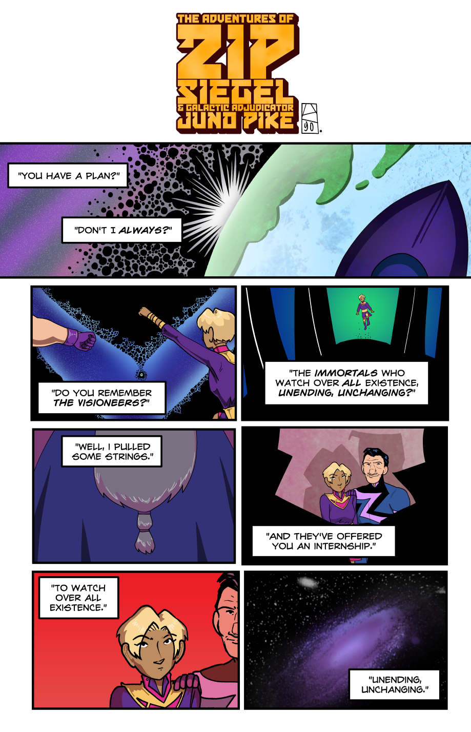 PANEL TWO: Zip and Juno fly into the Gap.