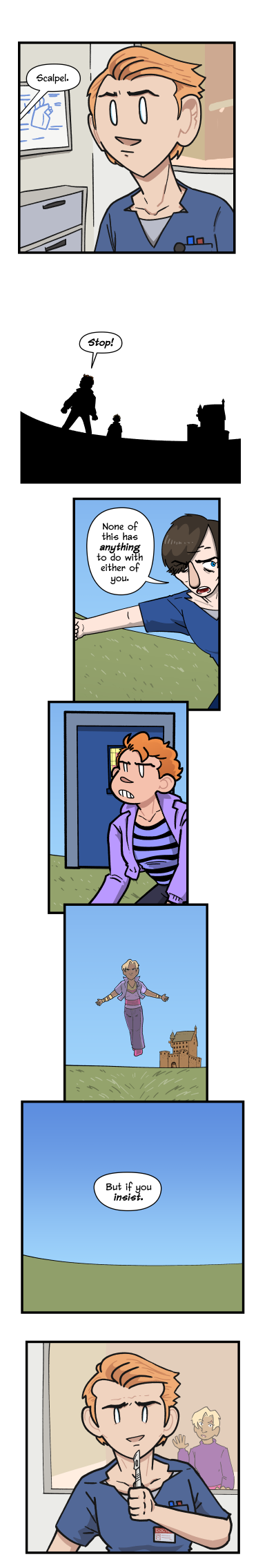 Avi notices the Nurse coming up. “Hi,” he says, “You must be new here.”