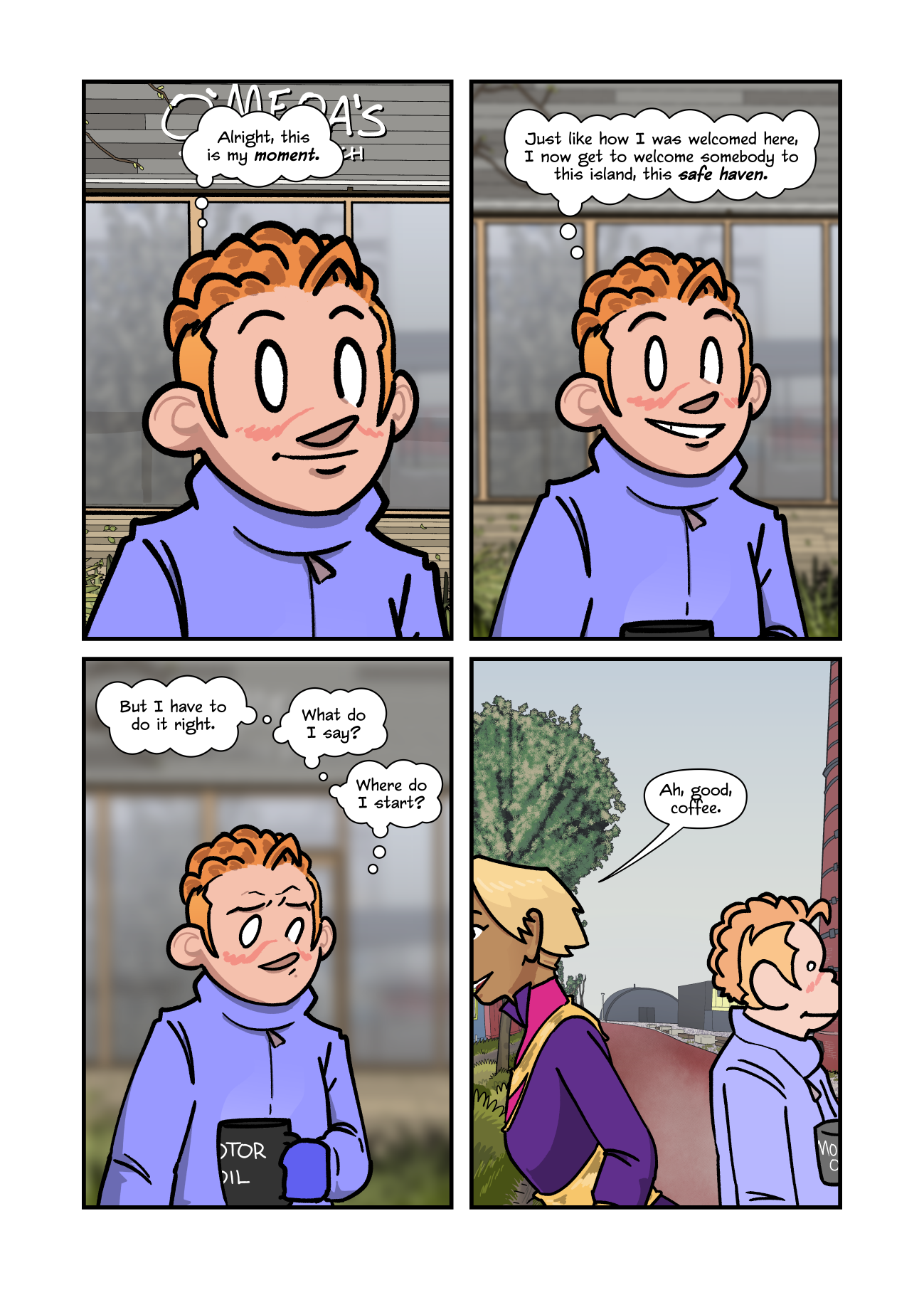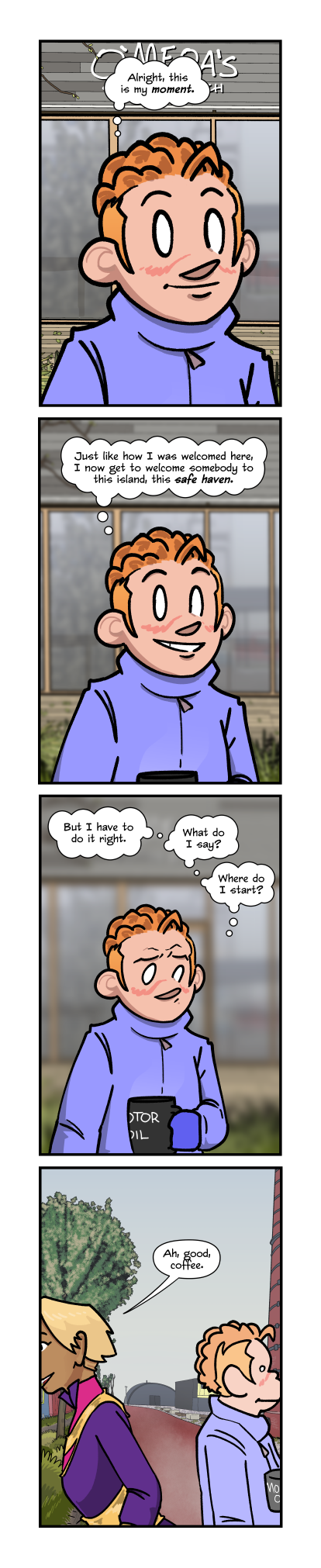 "Alright," Annie thinks to herself, "this is my moment. Just like how I was welcomed here, I now get to welcome somebody to this island, this safe haven." But doubt creeps in. "But I have to do it right. What do I say? Where do I start?"