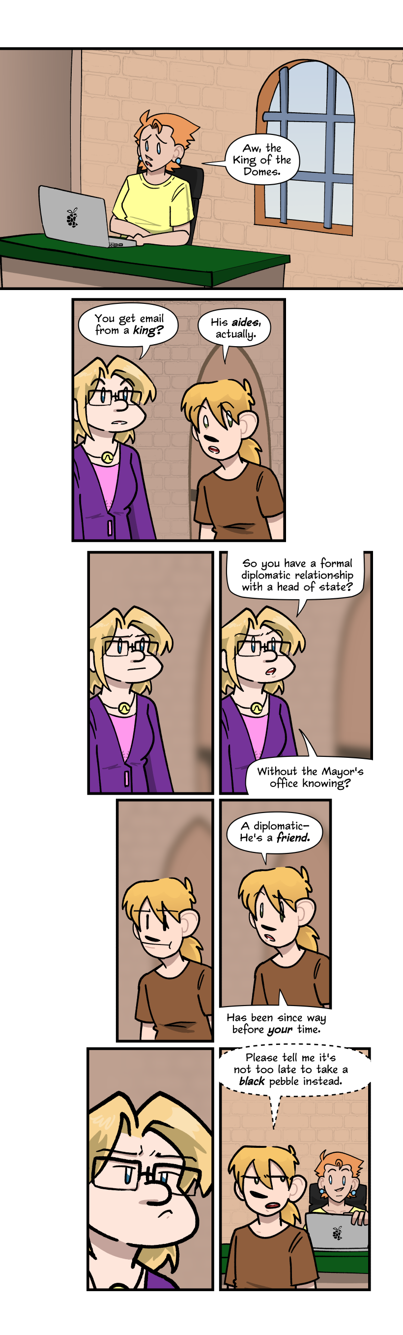 “Aw,” Aquila says, sitting at Avi’s computer, “the King of the Domes.”