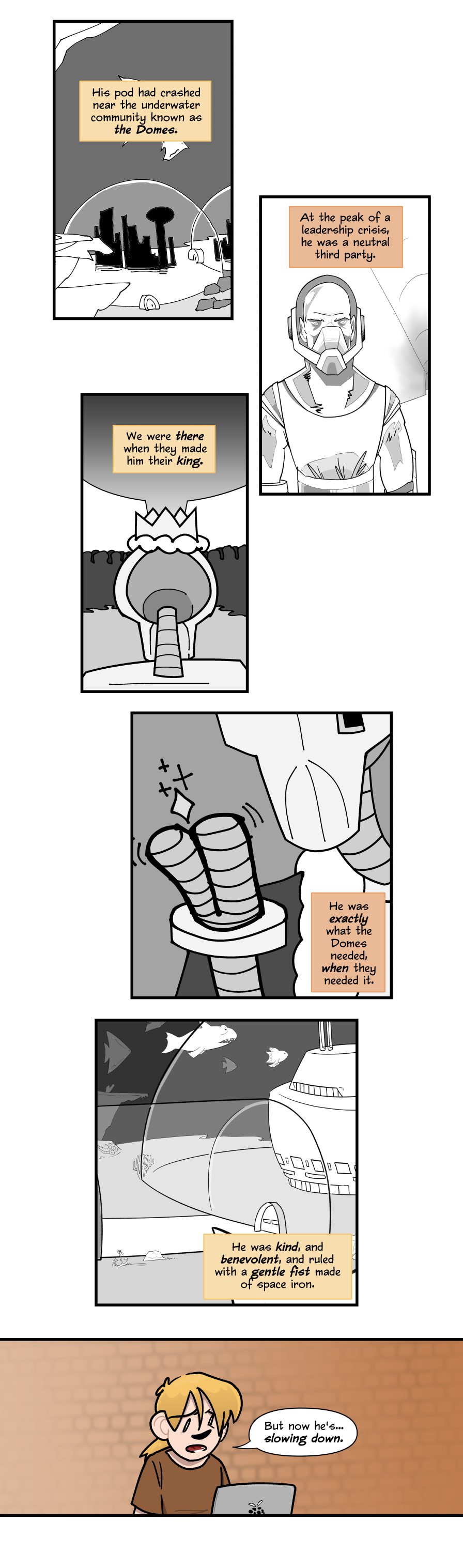 “He was exactly what the Domes needed, when they needed it.” — A spark between his robot fingers.